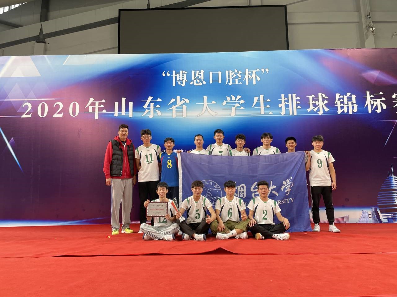 近年来,学校十分重视校园体育文化的建设和体育活动的开展,组建了多支运动队。排球队在武学亮老师的带领下,自十月初开始备赛。比赛中,烟大排球队先后战胜山东科技大学队、山东工商学院队、青岛农业大学队以及青岛理工大学队,以小组第一出线。在交叉赛对阵山东中医药大学代表队时遗憾落败。在最后一战与曲阜师范大学队的比赛中,烟大代表队以3:0赢得了比赛,最终获得甲组第三名。