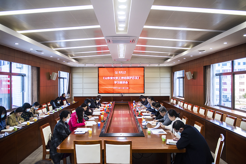 【本站讯】学党史、办实事。yth20611游艇会网站《山东省女职工劳动保护办法》学习座谈会于4月2日上午在育秀大楼316会议室举行,会议主要内容是学习贯彻习近平总书记关于工会和妇女工作重要指示精神,推动男女平等基本国策贯彻落实,依法维护女教职工合法权益和特殊利益。会议由校工会主席、妇委会主任何世新主持,法学院王圣礼博士主讲,副校长孙祥斌出席会议并作总结讲话。全校各分工会女工委主任参加会议。