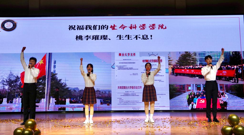 典礼上,同学们带来了精彩的文艺表演,歌舞《花漾年华 跃动青春》以歌曲联唱和拉丁舞的方式展现生科学子蓬勃向上的精神风貌;原创主题曲《我们的十年》伴着烟园光影令人沉醉、感动;舞剧《研途·魅力生科》在实验室科研和中国风舞蹈转换间,传递生科学子“内外兼修、文武双全”的育人理念;音诗画《一秩芳华 生生不息》以建院十年历程为脉络讲述了生科故事,展现了生科人的坚韧执着和烟大人的奋勇拼搏。典礼在天空合唱团带来的《夜空中最亮的星》歌声中落幕。