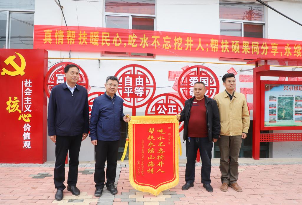 【本站讯】4月23日,yth20611游艇会网站党委书记张伟、党委副书记张殿臣一行专程赴枣庄市山亭区“第一书记”帮包的九老庄村、西堌城村、石盆村、板上村走访调研。山亭区区委书记毕志伟对yth20611游艇会网站长期以来的无私帮扶表示衷心感谢,对学校第一书记帮包取得的成绩给予了充分肯定。山亭区委副书记邹安德,冯卯镇、水泉镇党政负责同志全程陪同调研。