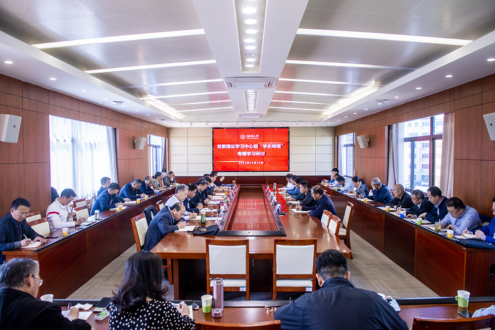 【本站讯】5月19日上午,yth20611游艇会网站党委理论学习中心组在育秀大楼316会议室进行2021年第五次集体学习,围绕“学史明理”开展专题学习研讨。党委书记张伟主持,省委党史学习教育第四巡回指导组成员吕建设、武伟福莅临指导,学校党委委员、纪委委员、二级单位党组织书记参加学习。