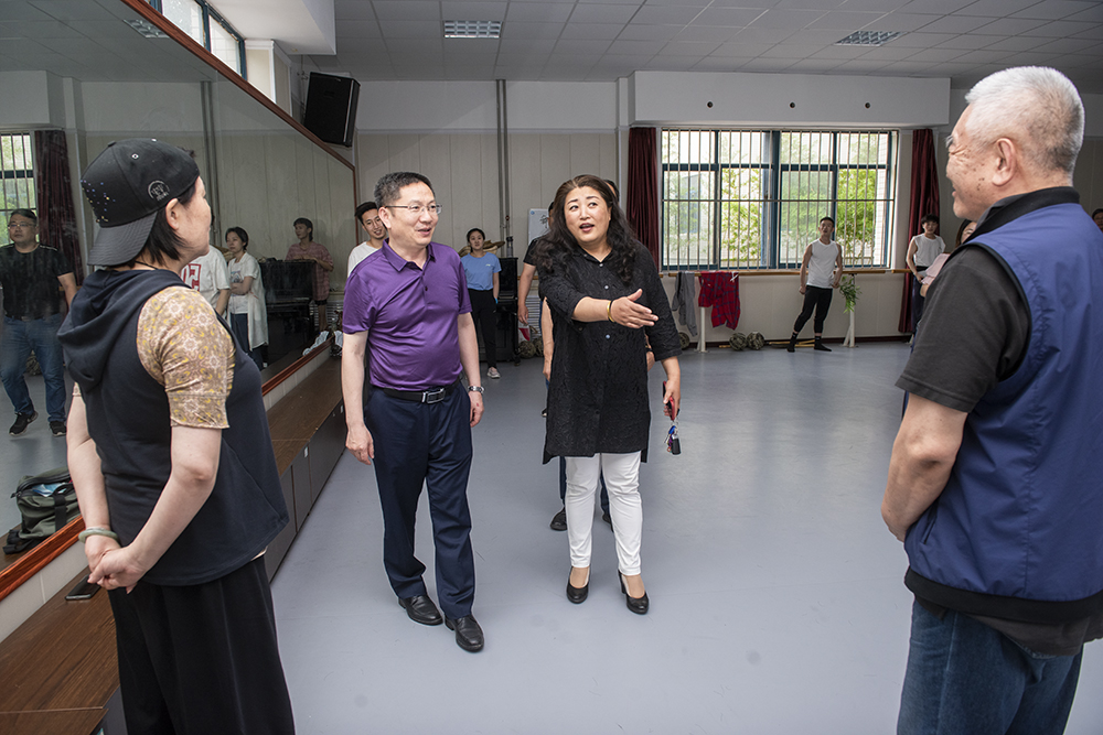 【本站讯】6月9日下午,yth20611游艇会网站校长段培永、副校长王强及学校办公室、党委宣传部负责人到音乐舞蹈学院看望舞剧《地雷战》参演师生,并听取舞剧排练情况汇报。