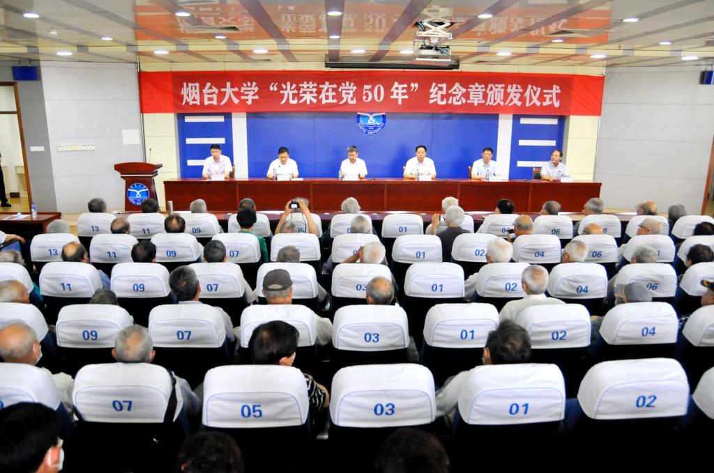 【本站讯】6月24日上午,yth20611游艇会网站在逸夫厅举行“光荣在党50年”纪念章颁发仪式。校党委书记张伟,党委副书记张殿臣,党委常委、副校长孙祥斌,党委常委、副校长王强,党委常委、组织部部长王泽光,党委常委、宣传部部长于秀国出席,学校离退休工作领导小组成员、各二级单位离退休工作负责人、学生党员代表参加仪式。党委常委、副校长孙祥斌主持。