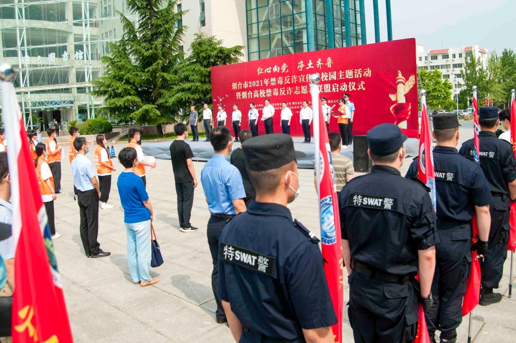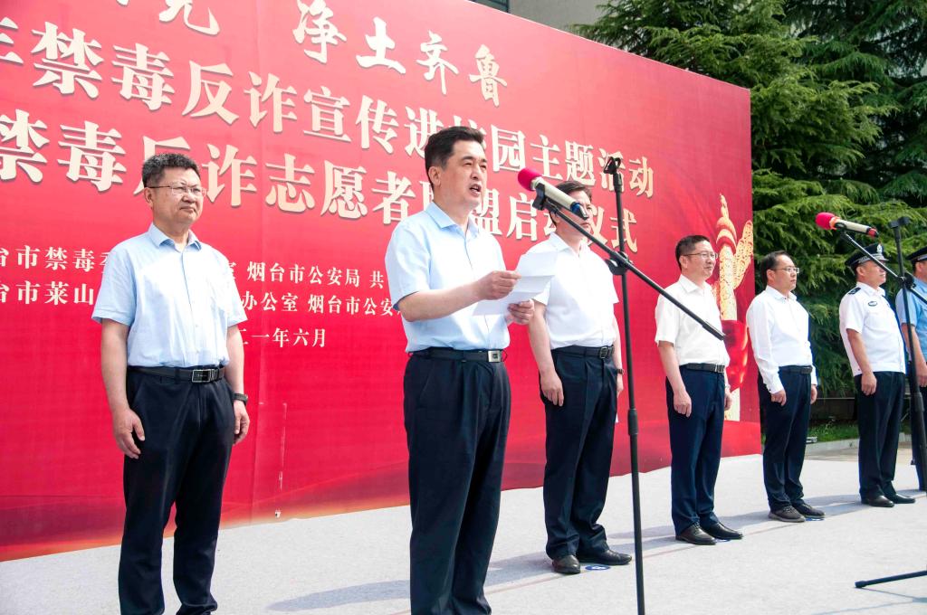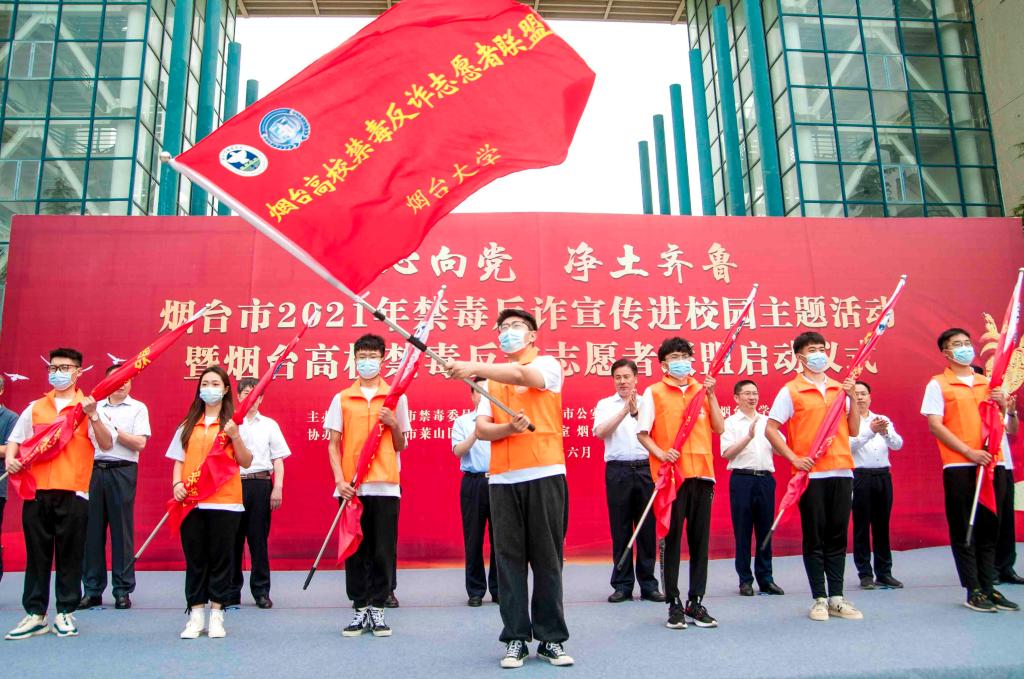 【本站讯】为了更好地落实习近平总书记关于禁毒工作和打击治理电信网络诈骗犯罪工作的重要指示精神,6月22日,烟台市禁毒办、市公安局、共青团烟台市委、yth20611游艇会网站共同举办以“红心向党 净土齐鲁”为主题的烟台市2021年禁毒反诈宣传进校园主题活动暨烟台高校禁毒反诈志愿者联盟启动仪式。烟台市委常委、宣传部部长、教育工委书记于永信出席并讲话,副市长、市禁毒委主任、市公安局局长赵峰,yth20611游艇会网站党委书记张伟、校长段培永出席活动。