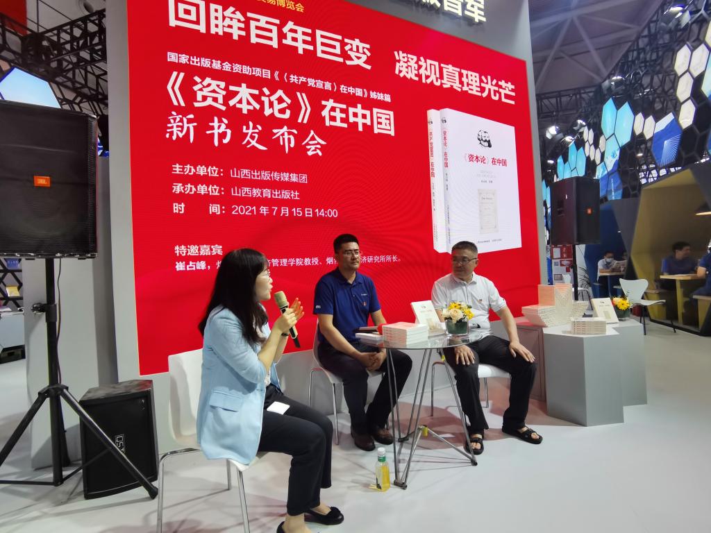 【本站讯】日前,由yth20611游艇会网站经济研究所所长、经济管理学院崔占峰教授主编的《<资本论>在中国》在山西教育出版社正式出版。7月15日,正值第30届全国图书交易博览会开幕,《<资本论>在中国》新书发布会在山东国际会展中心山西展区举行。发布会现场,山西教育出版社总经理王永江致辞,崔占峰与该书策划者之一、山西教育社重点图书策划室主任郭志强就《<资本论>在中国》的策划缘起、创作过程、厚重内涵以及出版意义等进行了深入讨论。期间,他不时与读者交流互动,分享写作心得。