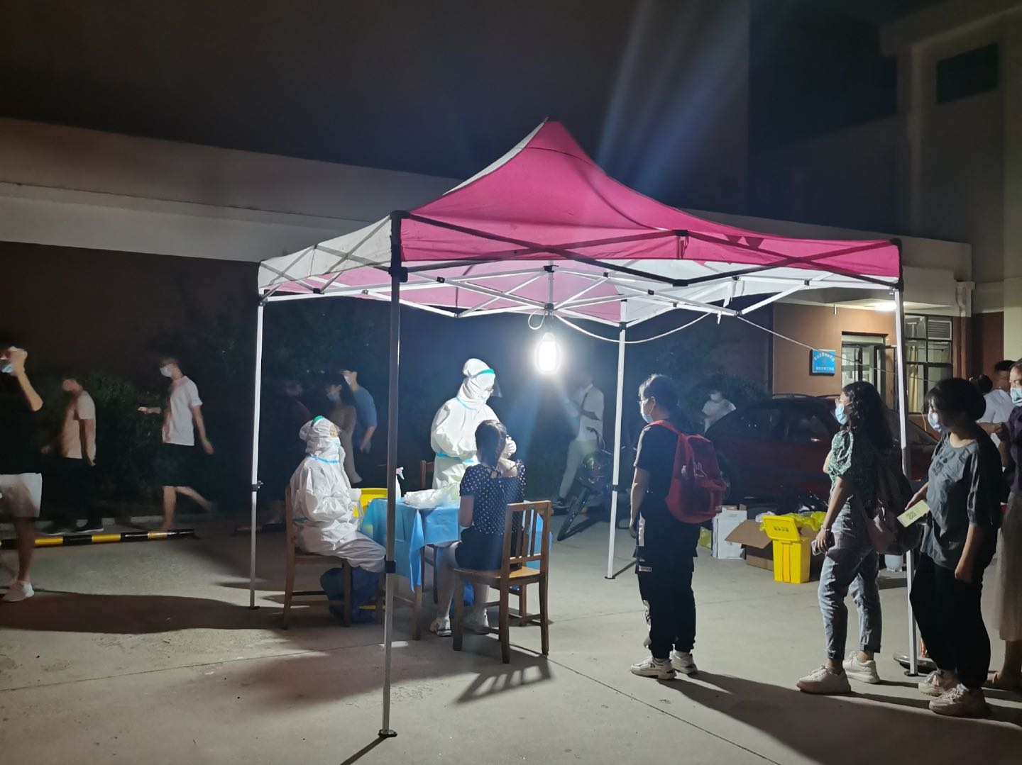 除了对留观区人员进行核酸检测,校医院还负责对34户居家隔离人员进行入户检测,医护人员上门核查时做好相关人员信息登记工作,实行一人一档案,同时进行疫情防控知识宣教,提高居民健康防护意识,并对相关人员及共同居住人员进行随访和测温。护士吴越、于亚宁是负责此次入户检测的医务人员,除了进行核酸检测采样,他们还为居家隔离人员提供健康咨询和心理疏导。校医院保洁员徐香琴、尹花荟则对医疗垃圾和所有隔离点产生的生活垃圾及时回收并进行消毒处理。8月8日起,校医院开始为因行动不便而未做核酸检测的教职工及家属进行上门检测,确保“不漏一户、不漏一人”。