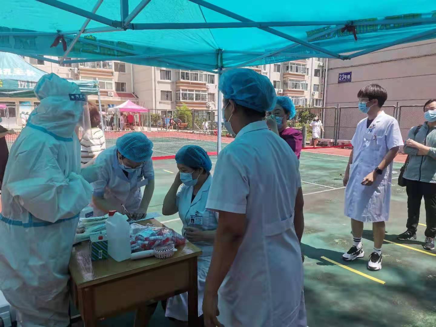 连日来,校医院全体员工全天候奋战在疫情防控一线,与相关职能部门工作人员一起,用坚守与奉献为烟大师生健康安全保驾护航。这其中,有在多个采集点轮流巡视,随时处理突发预警信息、调配相关物资的院长曲增欣、副院长丁洪新、医疗主任王淑珍;有负责将采集样本送至烟台市疾控中心进行检测,每次采集结束便立刻出发的医生段家麟;有家中孩子较小却舍小家为大家、全身心投入到疫情防控保卫战中的护士长谢艳妮、护士曹丽燕、检验科医生于巧;有身患高血压和糖尿病,不顾身体不适依旧坚守核酸检测岗位的护士韩林;有主动请缨和年轻医生一起全力做好留观区和居家隔离人员的医疗保障工作的50多岁的医生王丽华、谭青渠;有每隔一个小时对每个采集点的区域进行消毒,工作结束后还要对所有采集点进行彻底消毒的徐香琴、尹花荟……