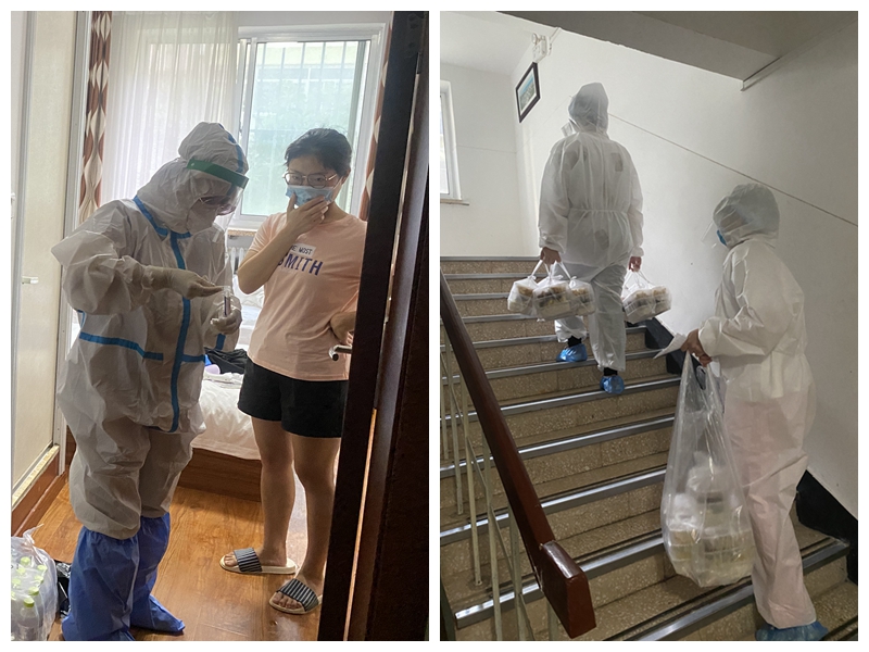 留观区的吴迪同学说,其实我们心里还是有一些担心害怕的,但是老师们一直在鼓励和陪伴我们,每天看到群里的同学们提出各种各样的要求,老师们总是特别耐心地解决,一整天都穿着防护服跑上跑下的,我们觉得既感动又安心。