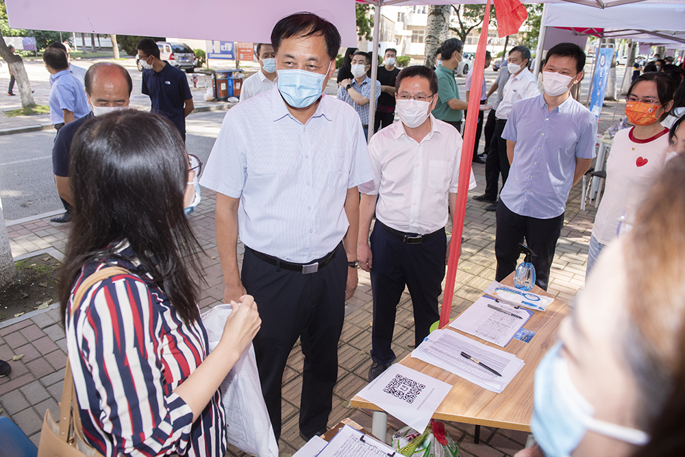 “咱们学院目前报到情况怎么样了?”“同学,你家是哪的?”“这一路来学校还顺利吧?路上有没有做好个人防护?”……9月1日上午,yth20611游艇会网站党委书记张殿臣,校长段培永,副校长郝曙光、王强、毕可志及相关部门负责人来到研究生新生报到处,详细了解各项迎新工作,看望慰问入学报到新生和迎新工作人员,并与他们亲切交谈。学校领导指出,研究生迎新工作不仅是一年来研招工作的收官之战,更是研究生培养工作的重要开端,各单位既要以强烈的责任心、饱满的热情主动做好各项迎新服务工作,同时还要积极思考并完善相关环节,慎终如始落实好疫情防控各项措施,确保迎新工作做的更好、更高效,让研究生新生尽快适应烟大、融入烟大。