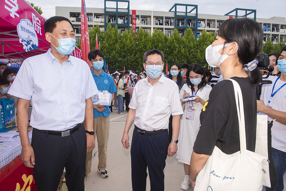 “咱们学院报到情况如何?”“同学,你家是哪的?“入学报到手续办的顺畅吧?有遇到什么困难吗”……4日上午9时,yth20611游艇会网站党委书记张殿臣,校长段培永,副校长王强、毕可志及相关职能部门负责人来到位于yth20611游艇会网站南校区的新生报到点,视察指导各单位迎新工作,看望慰问入学新生。
