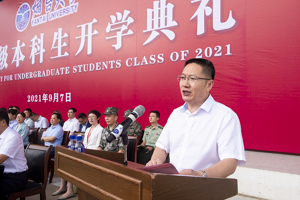 段培永最后希望全体新生能够记住这个梦想启航的日子,在美丽的烟大校园一起学习、相伴成长,共同期待、共同创造、共同享受属于烟大人的美好明天。
