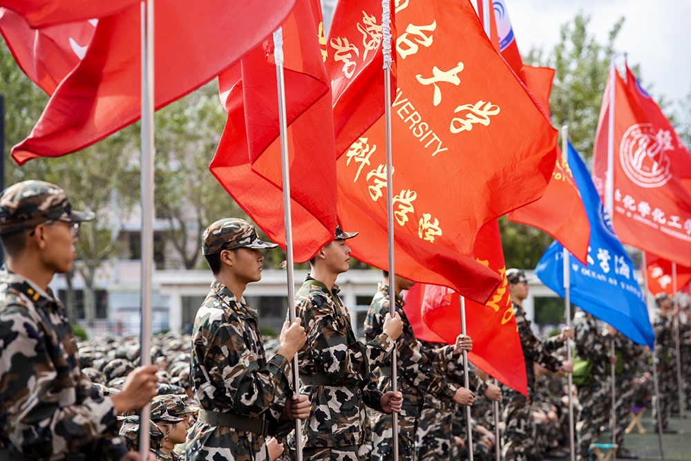 我院2021年新生军训从9月6日至9月18日,为期13天。军训内容主要为条令学习、队列训练、内务训练、学唱军歌等,其中穿插爱国主义教育、入学教育、军事拉练参观132舰艇、抗震救灾逃生、消防知识培训及实地灭火演练等科目。军训团设6个营,20个连,71个排,参训学生7千余人。营长由承训部队6名教官担任,教导员由各学院主管学生工作的书记(副书记)担任,连长由各学院推荐的辅导员担任,指导员由各学院新生辅导员担任,排长由学生教官担任。其中,自训教官由各学院推荐的20名辅导员老师和70名退役复学及有较强军事素质的军事爱好者组成。考虑到当前疫情防控因素影响,本次军训采取训技能、学理论进行错峰错时交错施训,以有效避免大量学生聚集造成的疫情隐患。
