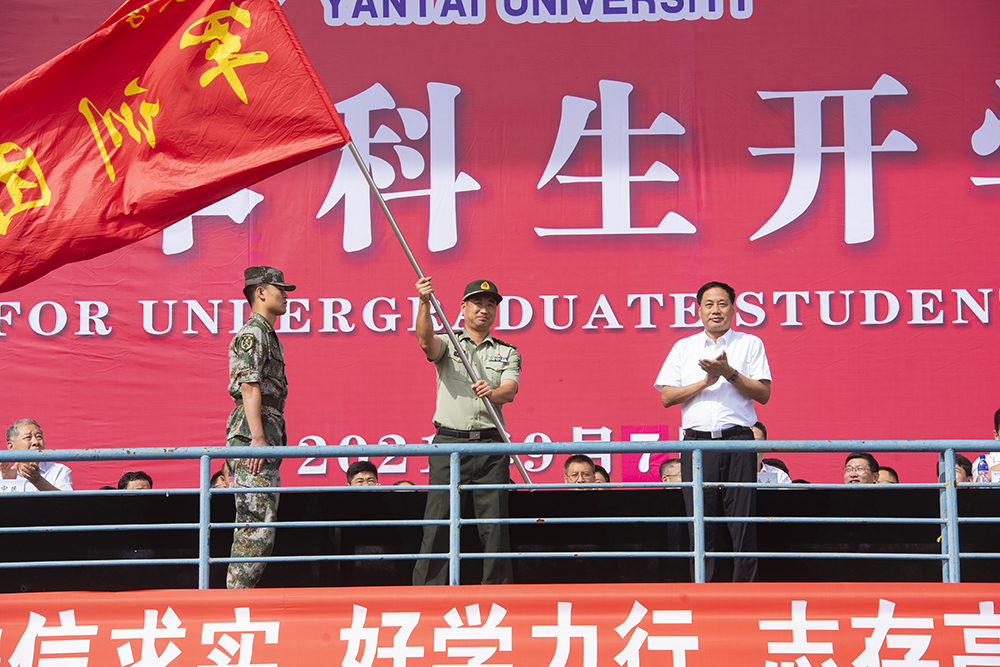 【本站讯】“刚走进美丽的烟大学堂,你们就穿上了绿色的军装;刚举行了隆重的开学典礼,你们就要开始紧张的军训。”9月7日上午,我院2021级本科生开学典礼结束后,学校随即举行2021年新生军训动员大会,党委书记张殿臣为军训团授旗,中国人民解放军333旅政治工作部副主任崔永峰代表军训团接旗,我院2021年新生军训全面启动。