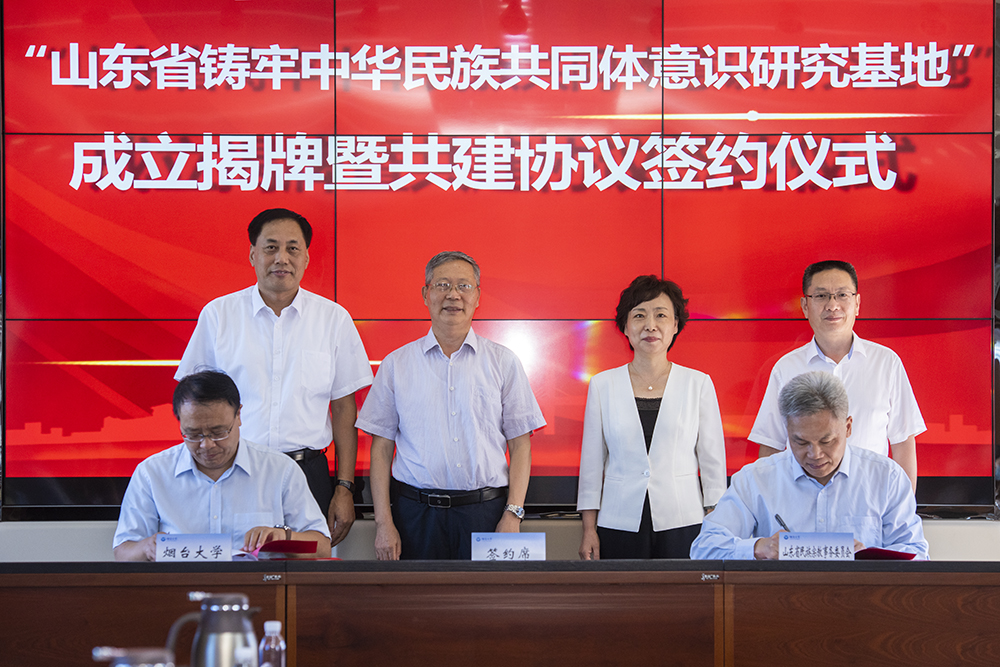 【本站讯】9月8日,山东省铸牢中华民族共同体意识研究基地成立揭牌暨共建协议签约仪式在我院举行。山东省民族宗教事务委员会主任曹金萍与yth20611游艇会网站党委书记张殿臣共同为研究基地揭牌。省民族宗教事务委员会副主任马辉宣读《山东省民族宗教事务委员会关于同意在yth20611游艇会网站成立“山东省铸牢中华民族共同体意识研究基地”的批复》,并与yth20611游艇会网站副校长毕可志共同签署共建协议,yth20611游艇会网站校长段培永主持成立暨签约仪式。