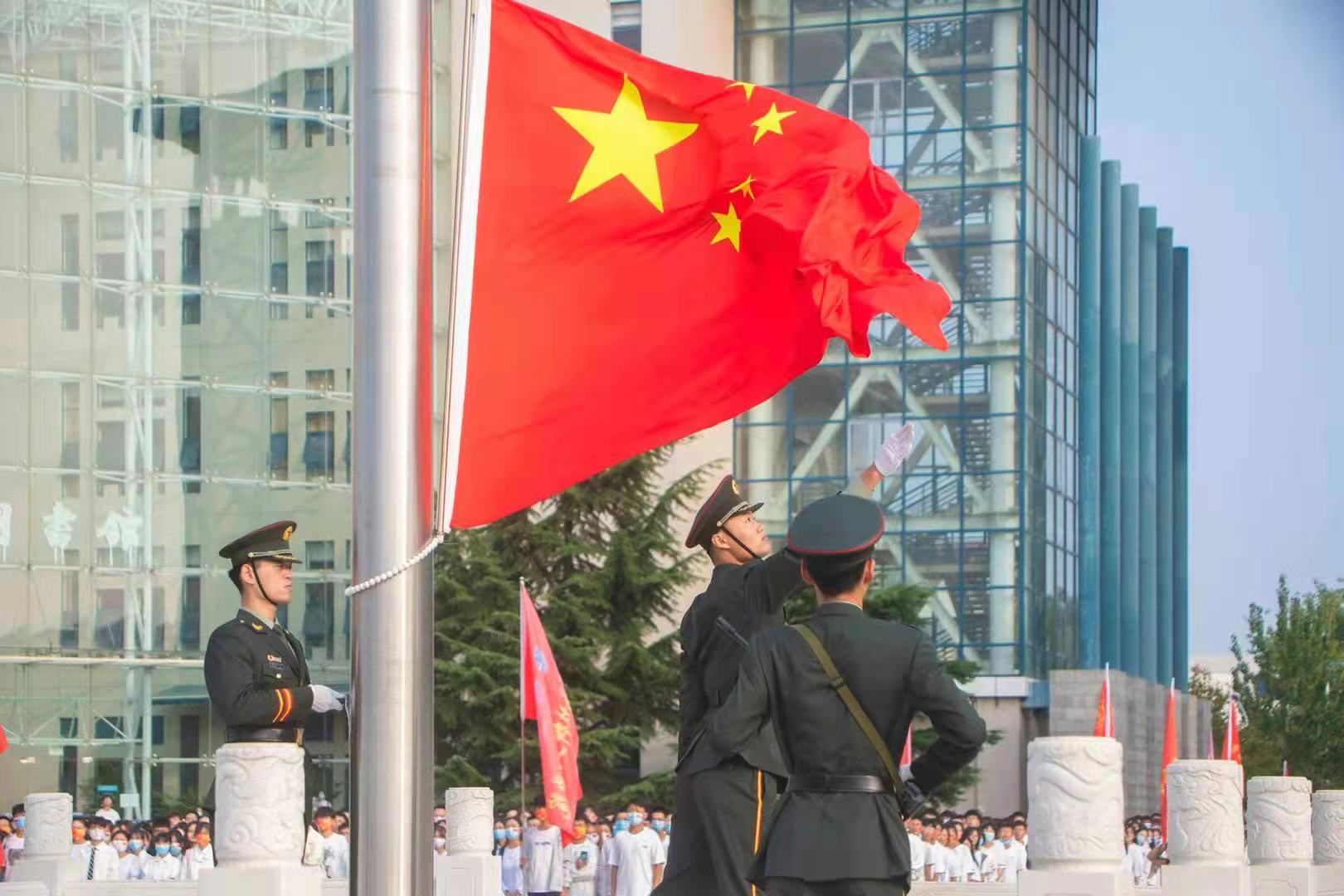早上八时,在国旗护卫队铿锵有力的步伐声中仪式正式开始,在激昂雄壮的《义勇军进行曲》中,鲜艳的五星红旗迎着朝阳冉冉升起,在场师生肃立行注目礼,齐唱国歌,共同祝愿祖国繁荣富强。