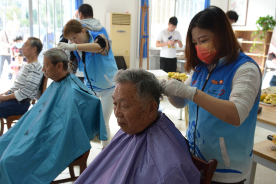 随后,离退休工作处与结对共建的烟台千祥公益发展中心党支部共同举办爱心志愿服务活动,邀请专业理发师在离退休党群服务中心阅览室为广大离退休老同志免费理发,通过暖心行动为老人们送上节日祝福。29位老同志按照登记序号有序排队理发,每理完一位,理发师都要微笑着问一句:“老师,理好了,请问您满意吗?”老同志对着镜子里的自己仔细打量,高兴地回答:“谢谢年轻人,很满意,很满意!”经过两个半小时的理发,全体老同志神采奕奕、笑容满面。退休教师卓紫苹理完发后说:“这次重阳节爱心理发活动非常有意义,想老同志之所想,从小事出发、从实际出发,切实解决老同志们的需求,让我们度过了一个温馨愉快的重阳节。”