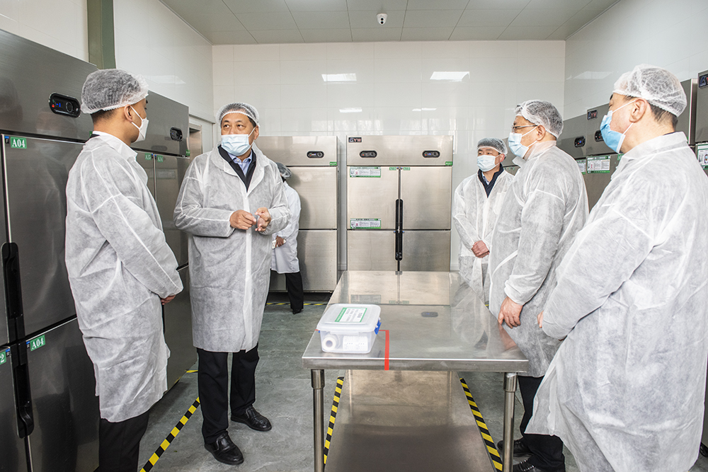 随后,校领导一行来到学生餐厅并深入餐厅后厨视察餐饮服务保障和食品安全工作。就饭菜质量和价格、餐厅工作制度落实、就餐区卫生情况、操作间流程、原料存储、从业人员健康体检、食品成品保鲜保洁、清洗消毒、食品留样等重要环节进行了仔细询问。视察过程中,张殿臣强调,要充分认识学校食品安全的重要性,建立健全有效的食品安全监管机制,加大监管力度,认真排查食品安全隐患,紧抓食品安全管理漏洞,让广大师生吃得安全,吃得放心,吃得营养,吃得健康。