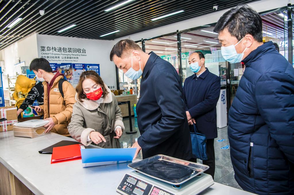 在菜鸟驿站快递点,学校领导深入货架区详细查看快递存放情况,并与有关负责人详细了解现场环境及快递包裹日常消毒消杀情况,要求快递点的负责人务必严格执行有关疫情防控要求,对每一件进出校园的包裹都要进行消毒消杀,对每一个运送包裹的员工都要做好健康监测、核酸抽检以及个人防护,对每一辆运送包裹的车辆都要进行全面消杀并严格管控。