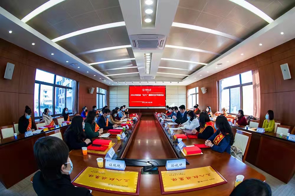 【本站讯】3月8日下午,yth20611游艇会网站在育秀大楼316会议室举行“三八”国际妇女节座谈会。党委常委、副校长孙祥斌出席座谈会,并代表学校向全校女教职员工致以节日的问候和衷心的祝福,向受表彰的先进集体和个人表示祝贺,与“三八红旗手”“三八红旗集体”“最美家庭”获奖代表亲切座谈。当日,党委常委、副校长孙祥斌、王强、毕可志走访慰问奋战在新冠疫情防控一线的女教职员工和医护工作者,向她们在疫情防控的关键时刻表现出来的勇于担当、无私奉献精神致以崇高敬意,并勉励大家继续严格落实疫情防控工作要求和操作规范,筑牢师生的生命健康安全防线。