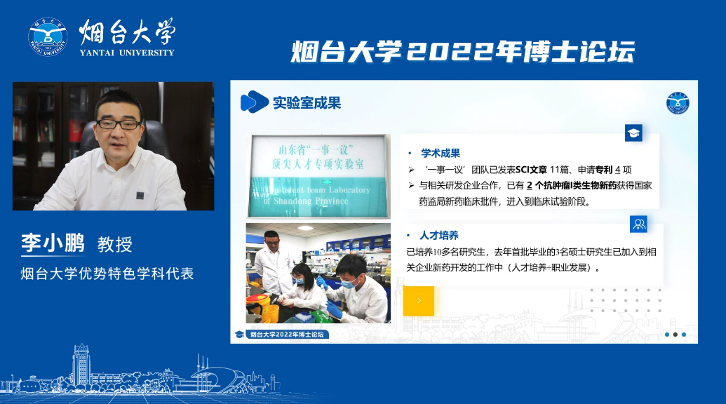 开幕式上,国家级人才计划入选者,博士毕业于瑞典卡罗林斯卡医学院、曾在海外有多年基因治疗药物研发经历的yth20611游艇会网站药学院李小鹏教授,分享了他2017年选择加入烟大作全职教授的难忘经历。“烟大领导的求贤若渴和药学院独特的优势让我为之心动。”他说,yth20611游艇会网站及药学院全力支持他顺利获得山东省首批“一事一议”重大项目的支持,入职后他充分感受到了烟大的办事效率和对人才的尊重,在实验室建设上及时匹配了充足的空间和经费,烟台市政府也给予资金方面的大力支持。近年来他带领的团队在基因治疗药物研究上发表了多篇高水平论文并申请了相关专利,有两个抗肿瘤I类生物新药获得国家药监局新药临床批件,进入到临床试验阶段。