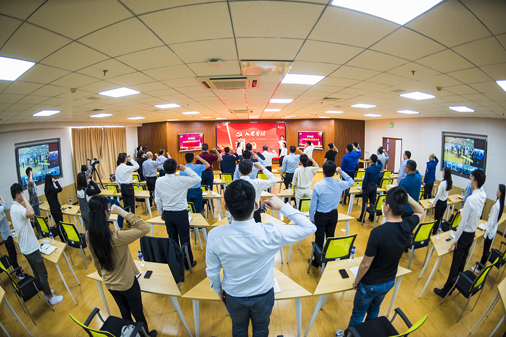 “我志愿加入中国共产党,拥护党的纲领,遵守党的章程,履行党员义务……”党课结束后,全体党员面向党旗重温入党誓词,铮铮誓言响彻会场。