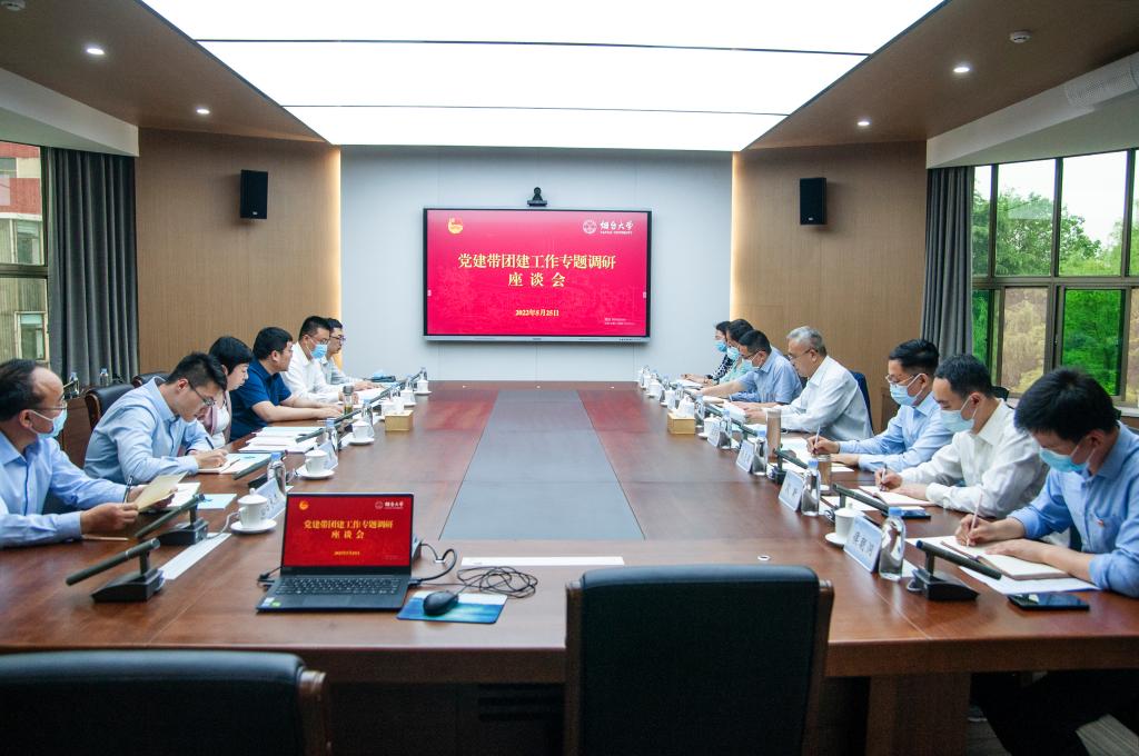 调研组观看了学校宣传片、党建带团建工作专题片,深入了解了学校建设发展基本情况与党建带团建工作成果。座谈期间,校团委书记刘超、化学化工学院党委书记段志国、经济管理学院党总支书记张广毅、计算机与控制工程学院党总支书记段昕、文学与新闻传播学院团委副书记侯朝洞、法学院团委负责人孙世玉围绕调研内容先后进行汇报发言。听取汇报后,调研组对yth20611游艇会网站党建带团建工作给予充分肯定,重点围绕党建带团建工作机制、团干部配备和履职、青马工程、团员推优入党、“青鸟计划”、团干部作风整顿提升、党组织带领团组织围绕中心服务大局等情况进行了座谈交流。
