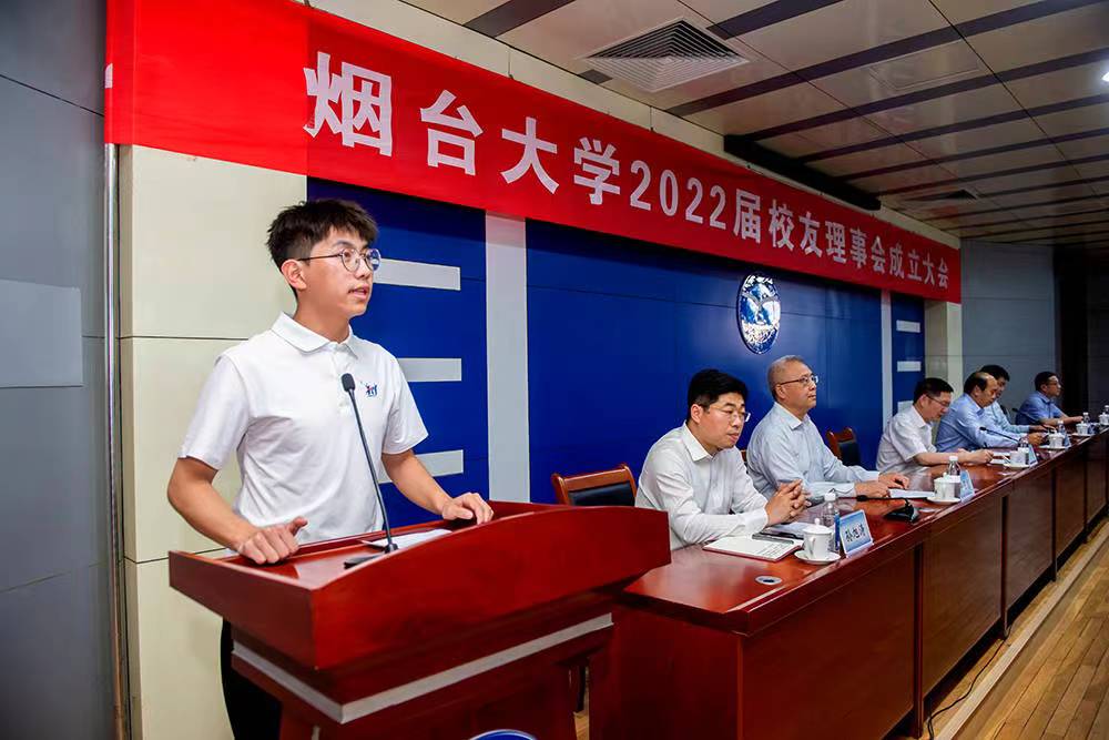 大会宣读了《关于成立我院2022届校友理事会的决定》《我院2022届校友理事会常务理事及组织机构人员名单》,与会老师逐一为每位理事颁发聘书。2022届校友理事会副理事长、原社团联合会主席、机电汽车工程学院朱鹏代表全体理事发言,他表达了对母校培养的感激之情,回忆了在烟大学习生活的四年时光,郑重承诺将认真履职尽责,充分发扬烟大精神,积极协助、配合校友办和地方校友组织工作,发挥好桥梁纽带作用,广泛联络、服务和凝聚校友,力求创新,乐于奉献,努力将理事会各项工作落到实处,不辜负母校和校友们的信任与期待,努力为校友和母校事业发展贡献力量。