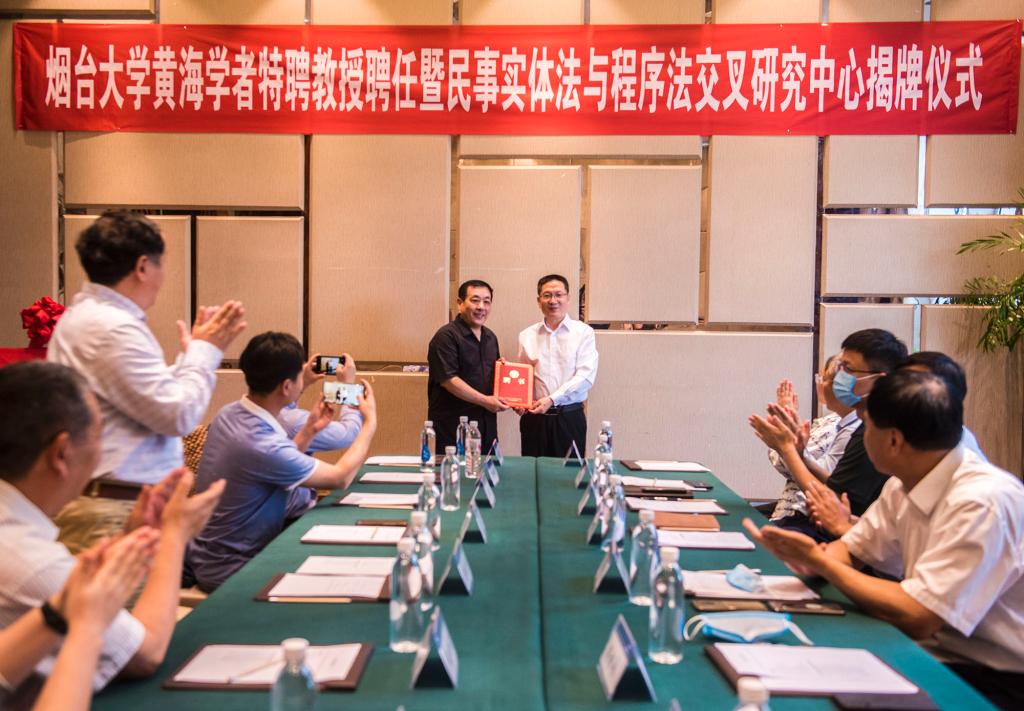 【本站讯】6月14日下午,我院举行聘任中国民事诉讼法学研究会会长、清华大学教授张卫平为黄海学者特聘教授的聘任仪式。党委书记张殿臣,党委副书记、校长段培永,党委常委、副校长李合亮,人事处、法学院相关负责人,学校民事实体法与程序法交叉研究中心教师参加。聘任仪式由李合亮主持。
