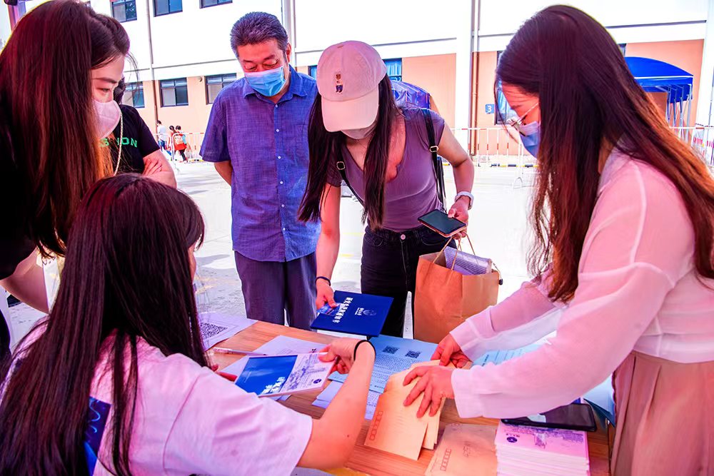 按照学校疫情防控要求,学生工作处提前做好各项工作预案,合理规划布置迎新场地,确保核酸检测应检尽检人员和新生检测不交叉、不重叠。各学院辅导员冲在第一线,认真核查每位新生的核酸阴性证明、健康码、行程码,指导学生扫场所码和到校码,确保信息准确无误。为减少人员聚集,让新生少跑路,学校继续采用“一站式”报到服务,信息核验、宿舍办理、自主缴费等手续均可在报到处完成。报到现场,学生工作处、研究生处、后勤管理处、保卫处、校医院及各学院工作人员齐心协力、密切配合,现场秩序井然,得到广大新生和家长的充分认可。