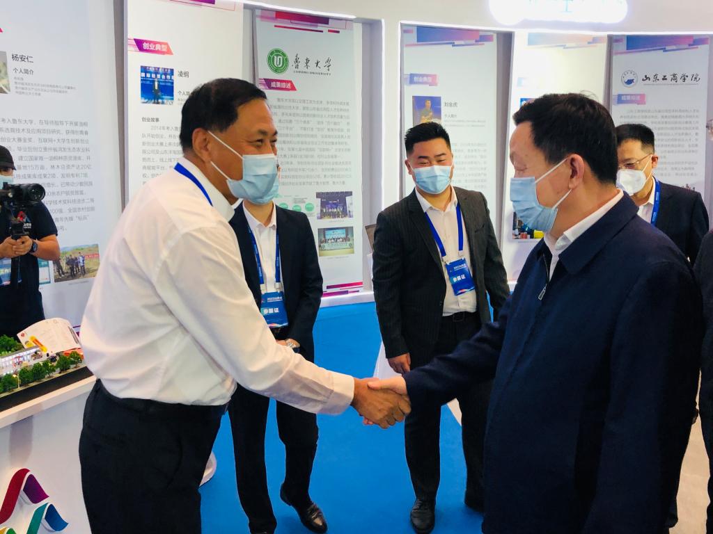 会展活动中,省委副书记、省长周乃翔,省直部门主要领导及烟台市委市政府主要领导亲临大学生创新创业成果展区巡展并指导工作。张殿臣在双创周活动交流中表示,学校向来重视大学生创新创业工作,积极响应国家“大众创业、万众创新”的号召,充分发挥北大清华两校援建优势,以培养创新型人才为目标,优化专业结构、创新培育机制,大力构建以“互联网+”“挑战杯”赛事为龙头,N项学科竞赛为中坚,N项科技创新项目为基础的“2NN”创新创业育人体系。做实科教融合、产教融合,优化整合校内外创新创业资源,建设有北大清华烟大三校科技园、省级大学生创业园等百余个校内外创新创业平台,为学生创新创业项目提供全方位、多层次的支持服务,涌现出丰富的科技创新成果。近三年,yth20611游艇会网站在全国大学生创新创业类竞赛中累计获得国家级奖励1200余项、省级奖励3500余项。除此之外,学校多措并举在加强教师创新工作方面也取得了一系列代表性成果。例如,计控学院牟春晓团队的“现代化海洋牧场综合管理平台研发及应用”、机电学院郭忠团队的“自升式海洋石油钻井平台桁架桩腿系统的研究与应用”等创新项目助力海洋强省战略;生科院姜中武团队自主选育的“烟大一号”苹果等创新项目助力乡村振兴、校地融合;药学院分子药理和药物评价教育部重点实验室科研团队主持研发的创新微球制剂瑞欣妥上市、李小鹏团队抗肿瘤创新药物研发等创新项目助力生命健康产业发展。2018年,化院碳四科研团队专利“用甲乙酮系列混合溶剂分离丁烷与丁烯的方法”荣获中国专利金奖,打破了国外技术垄断,每年为企业增值50亿元。