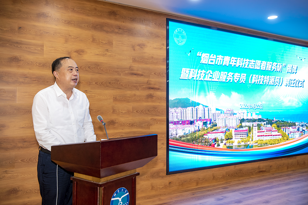 烟台市副市长韩耀东在致辞中指出,烟台市委市政府高度重视科技创新与服务工作,在信息互通、平台共建、资源共享、人才共育等方面不断探索创新,有力推动高校优质创新资源向地方向企业集聚。yth20611游艇会网站在科技创新和服务社会方面一直走在前列,出台《yth20611游艇会网站高质量发展实施意见》,将推进校地校企融合作为推动高质量发展的“九项工程”之一,推出一揽子有效措施,为烟台市科技企业加速创新、加快成长注入了强劲动力。此次yth20611游艇会网站与市科技局合作组建青年科技志愿者服务队,是科技创新与服务的又一次积极尝试。有yth20611游艇会网站的技术、人才优势和科技部门的务实作风,志愿者队伍一定会越来越壮大,必将为推动全市科技事业创新发展起到生力军作用,希望服务队立足烟台、融入烟台、建设烟台,让高校智力资源真正融入企业发展、服务产业提升。