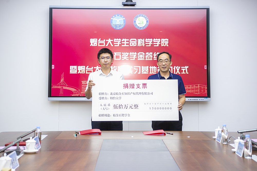 据了解,此次北京精金石知识产权代理有限公司共捐赠50万元设立精金石自强不息奖学金,用于奖励生物科学专业品学兼优、自强不息的优秀学生,大二、大三、大四每年级2个名额,每人次4000元;评选年度我校本科生第一志愿考取我校生物学一级学科硕士点研究生的研一新生,奖励总金额为2.6万元,以实际考入人数平均分配奖励总金额。设立教育实习基地,为学院本科生、研究生实习实践提供新的平台,有利于探索校企联合培养高技能应用型人才的新模式,构建适应企业发展需求的人才输送渠道,校企之间在就业招聘、产品研发、成果转让、技术培训等方面合作更加广泛。
