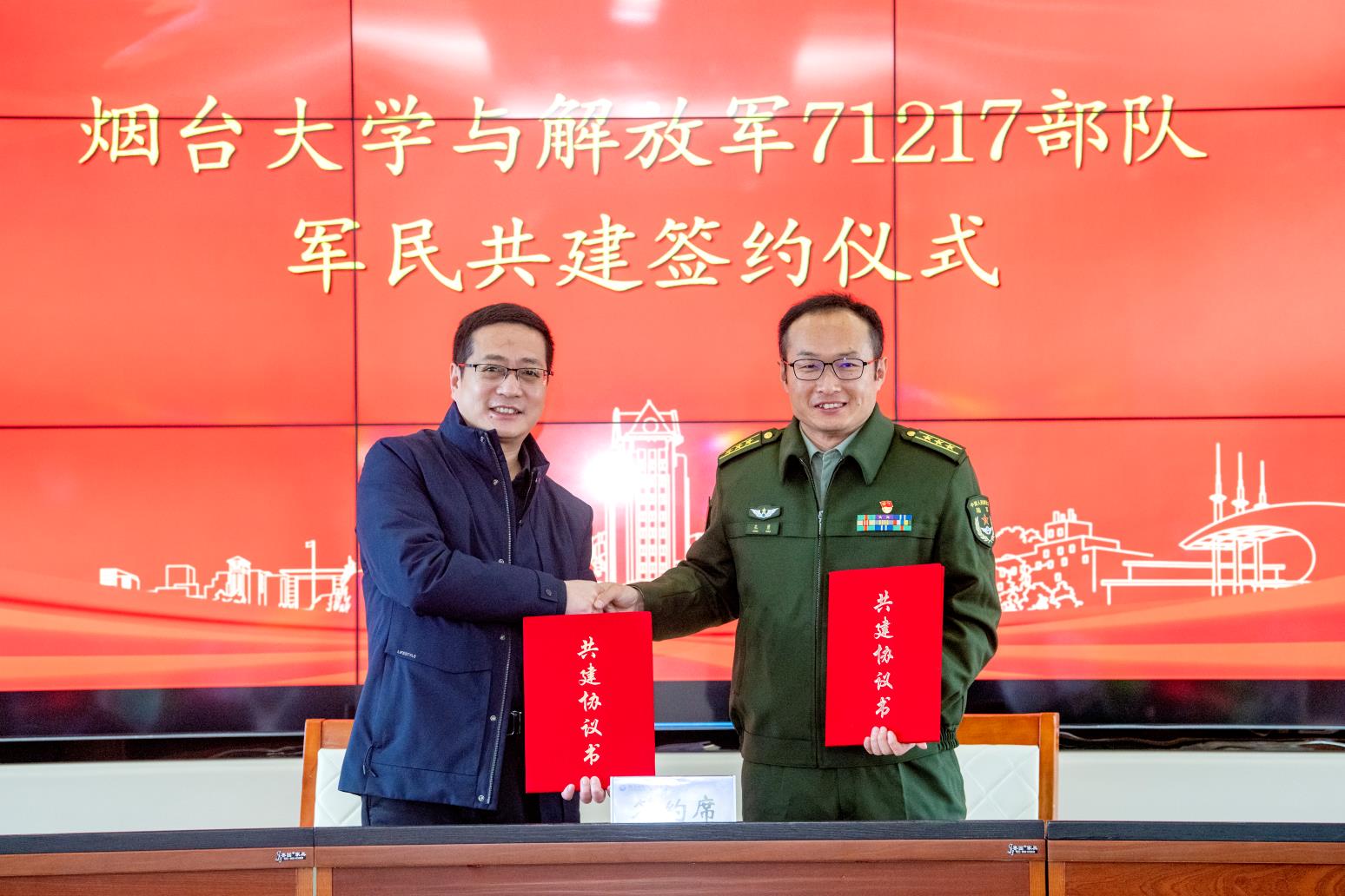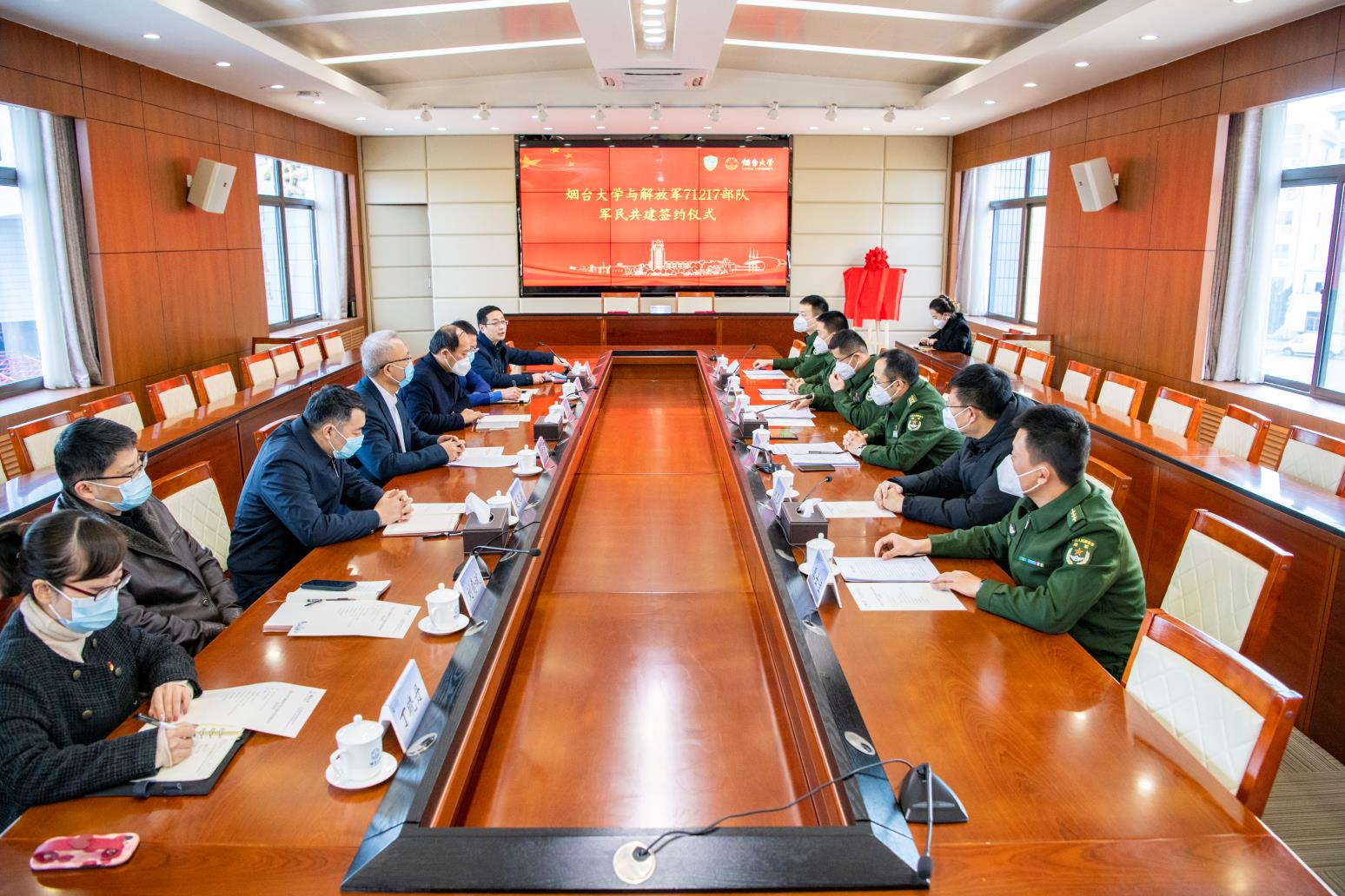 【本站讯】为推动军民共建社会主义精神文明活动深入开展,进一步构建和谐的军民关系,巩固和发展军政军民团结,12月16日上午,yth20611游艇会网站与解放军71217部队成功结对,并签订共建共育协议。解放军71217部队政治工作部上校主任孔勇、政治工作部中校副主任孙宝山、68分队中校营长李洞元、烟台市退役军人事务局副局长刘克诚,yth20611游艇会网站党委常委、副校长毕可志,党委常委、宣传部部长于秀国出席仪式。