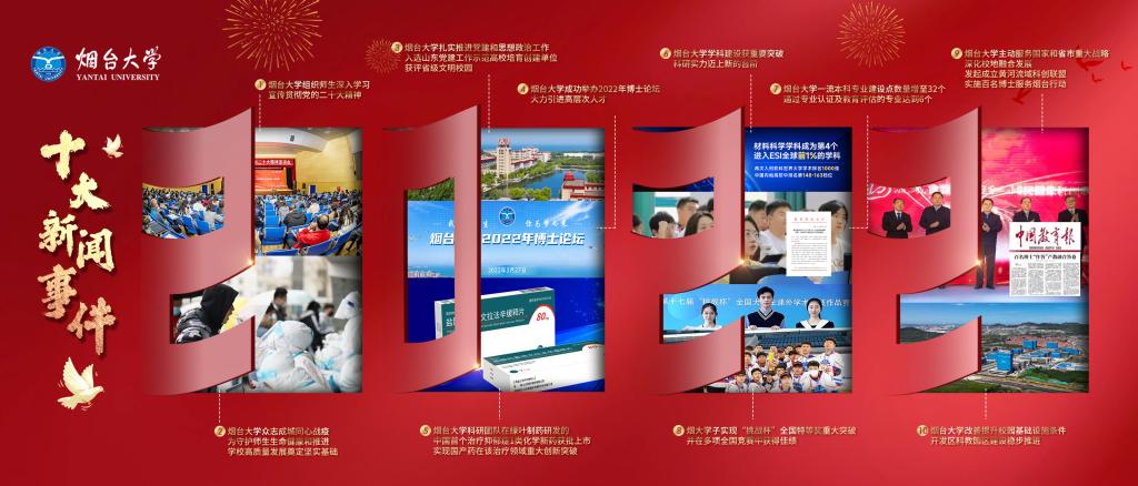 【本站讯】为进一步回顾总结我校一年来取得的发展成就,激发广大师生知校、爱校、荣校、兴校热情,凝聚建设高水平大学的强大正能量,学校开展了2022年度十大新闻事件评选活动。经过全校推荐、网络投票、学校研究,确定了我院2022年十大新闻事件,下面让我们共同回顾属于每一个烟大人的2022。
