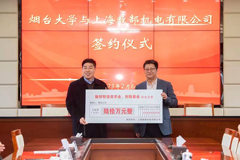 【本站讯】2月6日下午,我院举行上海数郜机电有限公司捐赠暨签约仪式,上海数郜机电有限公司向yth20611游艇会网站捐赠60万元,设立数郜智造奖学金、数郜智造励志奖学金、数郜智造创新基金。上海数郜机电有限公司董事长刘永臣,yth20611游艇会网站党委常委、副校长王强出席签约仪式,签约仪式由生命科学学院副院长孙利芹主持。