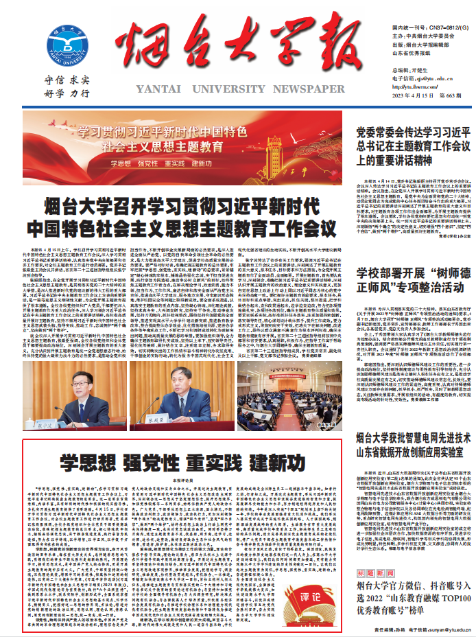重实践,把思想转化为推动工作的强大力量。理论的价值在于指导实践,理论的说服力、感召力从根本上说源于在科学指导实践中展现的真理力量。开展这次主题教育,要坚持理论和实践相结合,用习近平新时代中国特色社会主义思想改造客观世界、推动事业发展,把理论学习、调查研究、推动发展、检视整改贯通起来,有机融合、一体推进。要锚定加快建设高水平大学这一目标,紧扣立德树人根本任务,将推进主题教育与贯彻落实党的二十大精神和习近平总书记关于教育的重要论述有机融合;与坚持和加强党对学校的全面领导有机融合;与大兴调查研究,解决难点问题有机融合;与全面提高人才培养质量,积极服务经济社会发展有机融合;与推进学校治理体系和治理能力现代化有机融合,把主题教育焕发出的热情和干劲转化为推进中国式现代化和社会主义现代化强省建设的烟大实践。