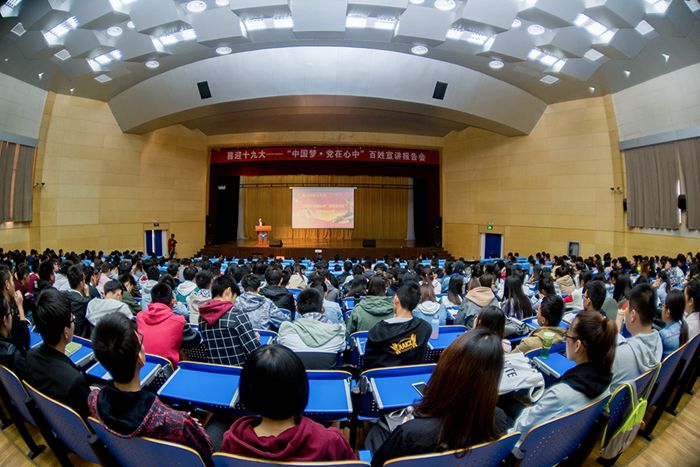 为讲好中国故事,传播时代声音,进一步营造迎接党的十九大浓厚氛围,10月12日下午,烟台市“喜迎十九大——中国梦·党在心中”百姓宣讲团应邀走进我校举办主题宣讲报告会。学校党委常委、副校长孙祥斌,党委宣传部部长何世新、校团委书记朱兴和700余名师生共同参加了报告会。