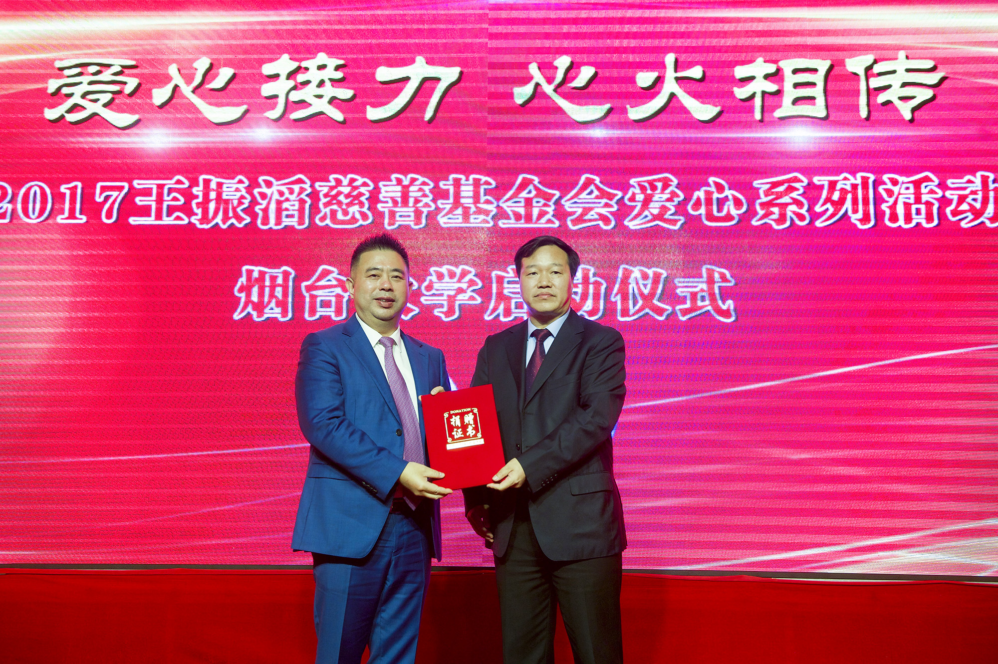 10月21日下午,以“爱心接力·心火相传”为主题的2017王振滔慈善基金会爱心系列活动yth20611游艇会网站启动仪式在于维紘学术交流中心举行,200名品学兼优、家庭贫困的烟大学子获得每人5000元共计100万元的爱心助学金,并宣誓成为新一批爱心接力手。王振滔慈善基金会创始人王振滔,山东省学生资助管理中心主任马希军,校领导郭善利、邓昌亮出席启动仪式。
