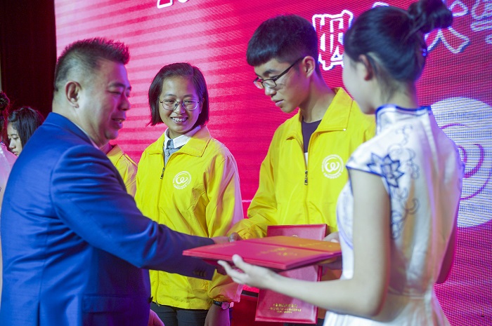 随后,郭校长代表学校接受基金会100万元爱心基金,并向王振滔慈善基金会颁发捐赠证书。与会领导为爱心接力手代表颁发了每人5000元的助学金。