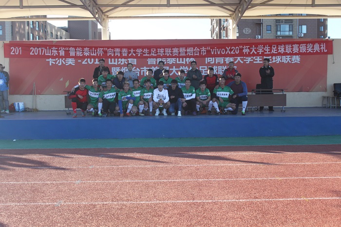 11月11日下午,2017年山东省“鲁能泰山杯”向青春大学生足球联赛暨烟台市首届大学生足球联赛决赛在山东省城市服务技师学院进行,我校足球队经过90分钟激战,以2:1战胜山东工商学院足球队,夺得冠军。