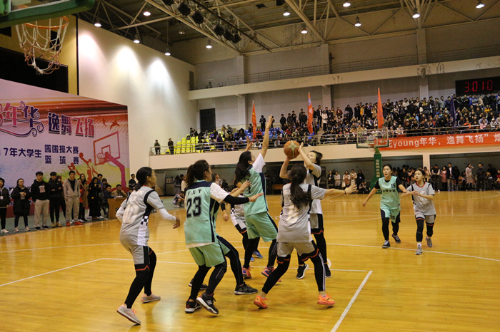 11月12日晚,大学生活动中心篮球场灯火通明、人声鼎沸,喝彩声、加油声此起彼伏,我院2017年大学生秋季篮球赛决赛正在这里举行。