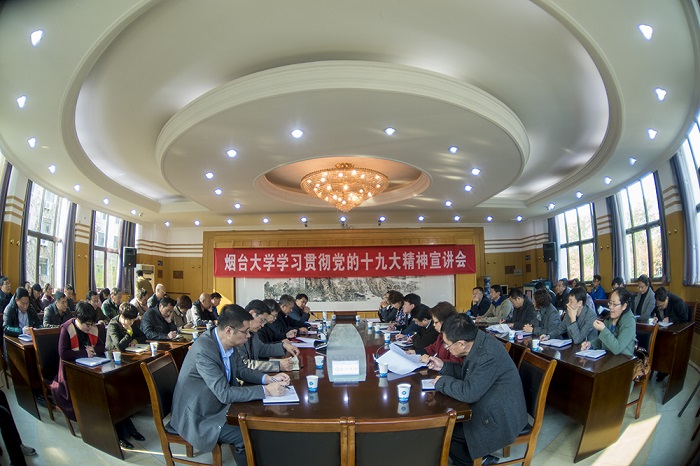 作为山东省高校学习贯彻党的十九大精神宣讲团成员,校党委书记张伟结合省委党校学习收获和体会从党的十九大主题和主要成果、习近平新时代中国特色社会主义思想、过去5年的历史性成就和历史性变革、中国特色社会主义进入新时代、我国社会主要矛盾的变化、两个一百年奋斗目标的战略部署、我国经济社会发展重大战略部署、坚定不移推进全面从严治党八个方面,为学校宣讲骨干进行系统、全面、深刻的辅导,此次宣讲为学校学习宣传贯彻党的十九大精神校内宣讲拉开序幕。