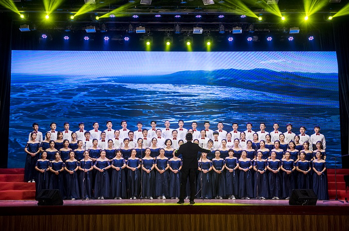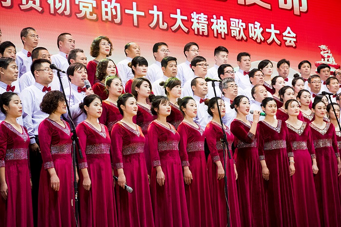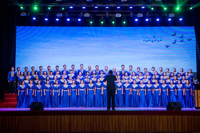 《旗帜颂》《在希望的田野上》《我们走在大路上》《走向复兴》《共筑中国梦》《我们从古田再出发》等曲目热情讴歌了党的光辉历程和伟大成就。“站在新起点,长征路更长,我的歌声伴随你传递八方。你用关注民生实现着幸福小康,你用百花齐放给生活添置彩妆,你用和平友谊送白鸽飞遍寰宇,你用民族复兴领我们再创辉煌。”一首首经典的歌曲体现了我校全体师生深入学习宣传贯彻党的十九大精神的浓厚氛围,进一步激励了各级党组织和广大师生坚定理想信念,牢记使命担当,以实际行动为实现中华民族伟大复兴的“中国梦”而努力奋斗。