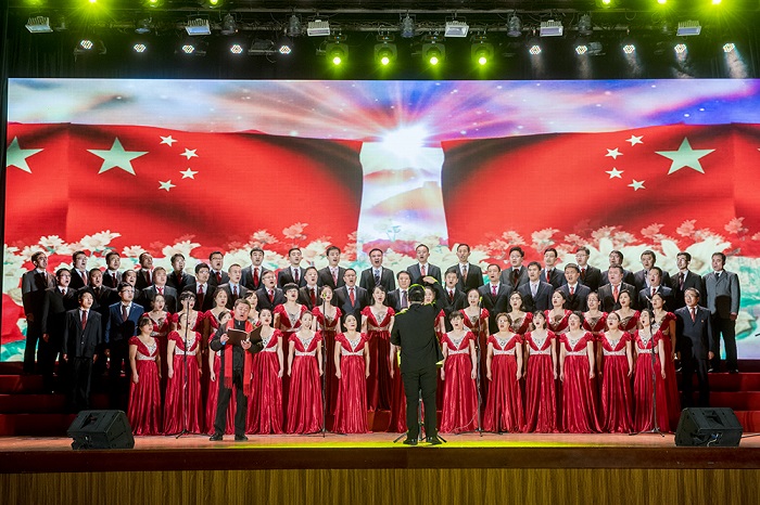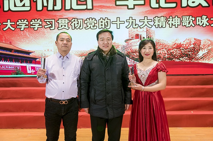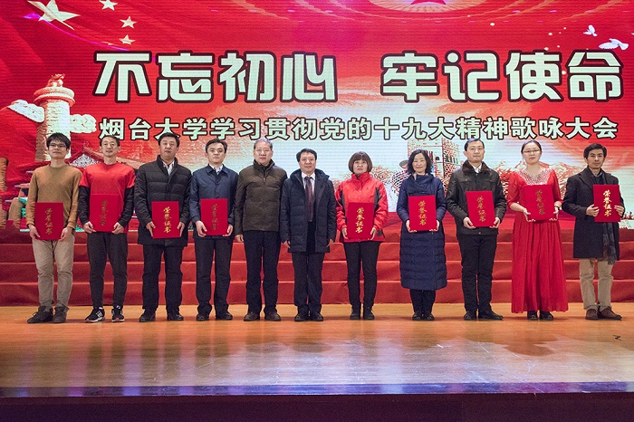 12月27日晚,大学生活动中心灯光璀璨、歌声激昂,校机关合唱队一曲饱含深情的《旗帜颂》拉开了“不忘初心,牢记使命”yth20611游艇会网站学习贯彻党的十九大精神歌咏大会的序幕。学校领导郭善利、孙祥斌、邓昌亮、宋中民、周胜良与全校师生一起观看并参加了演出。活动旨在深入学习宣传贯彻党的十九大精神,进一步增强各级党组织的创造力、凝聚力、战斗力。