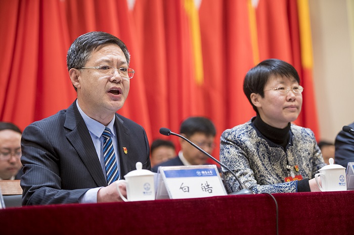 白皓代表省委教育工委和省教育厅党组,向大会的召开表示热烈的祝贺,向为学校改革发展付出辛勤劳动、做出积极贡献的师生员工致以诚挚的问候。白皓对中共yth20611游艇会网站第三次代表大会召开以来,学校发展取得的成绩给予充分肯定。白皓指出,当前yth20611游艇会网站正处在全面实施“十三五”规划、全面深化综合改革、全面推进高水平大学建设的关键时期。开好这次党代会,对于学校开启高水平大学新征程、开创学校党建思想政治工作新局面具有十分重要的意义。要提高政治站位,加强党的领导,为事业又好又快发展提供坚强保证;要坚持立德树人,强化使命担当,深入贯彻全国全省高校思政会精神;要把握历史机遇,坚定奋斗目标,持续推进学校各项事业改革创新。白皓希望即将选举产生的yth20611游艇会网站新一届党委班子,高举中国特色社会主义伟大旗帜,深入学习贯彻习近平新时代中国特色社会主义思想,全面贯彻落实党的十九大精神,团结带领全校党员干部和广大师生员工,坚持新发展理念,思想再解放、改革再深入、工作再抓实,加快高水平大学建设步伐。