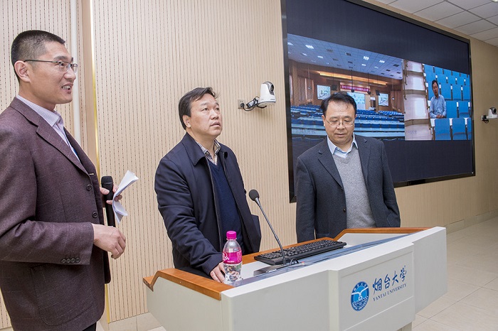 校领导首先来到综合楼410沉浸式直播活动互动教室,观看了我校三门上线东西部课程联盟课程的学校推介宣传片,观摩了作为混合式教学模式的直播互动教学。在第六教学楼209微课、慕课创作室,校领导考察了微课、慕课创作的流程和操作步骤。在研讨型教室,校领导听取了研讨分组和分屏情况汇报。在多媒体教室监控室,校领导查看了多媒体教室的运行情况,对教师的上课情况进行了抽查。现场考察结束后,校领导对进一步做好信息技术与教育教学深度融合进行了部署,并就微课、慕课创作室开放使用和提高研讨型教室使用效率提出了明确要求。
