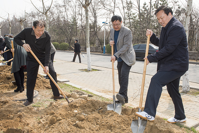 阳春三月芳草绿,又是一年植树时。3月26日上午,学校在学海路北侧开展植树活动。校领导郭善利、孙祥斌、邓昌亮、宋中民、郝曙光、王强与校机关工作人员一起参加了植树活动。
