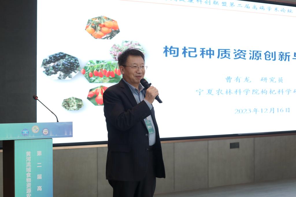 宁夏农林科学院枸杞科学研究所、国家枸杞工程技术研究中心主任曹有龙研究员作《枸杞种质资源创新与利用研究》主旨报告