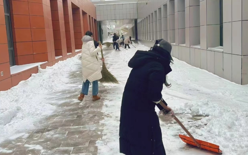 风雪虽大,但学校各部门、各学院师生员工积极响应学校号召,以“包片划区”形式做好分工,用实际行动为师生做实事,充分发挥党员先锋模范带头作用。他们利用课余、工作之余时间,挽起袖子,手持铁锹、扫帚,迎着寒风、踏着积雪,齐心协力将一条又一条道路的积雪清除。特里尔可持续发展技术学院本科生唐世煜说:“这次扫雪活动不仅是一次简单的劳动,在这个过程中,我感受到宝贵的团队精神在我们的共同努力清扫下,学校道路逐渐变得干净整洁,这让我特别有成就感。”