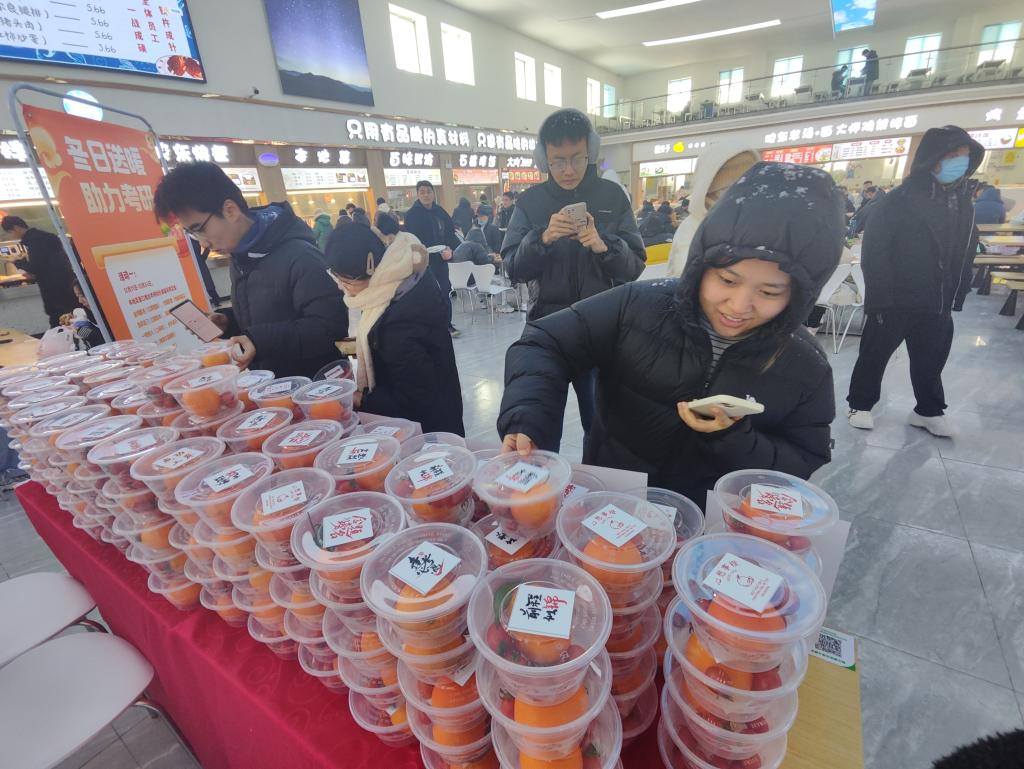 全国硕士研究生招生考试在即。为了帮助学子增强应考信心,学校各单位开展了为考研学子送温暖的活动,为学子增添一份冬日的温暖。走进第一餐厅,前来就餐的师生会发现,“冬日送暖 助力考研”主题活动已经准备就绪。工作人员正将分装成盒的橙子、圣女果送到考研学子手中,贴在盒子上的“心想事成”“逢考必过”等祝福贴纸让学子爱不释手。